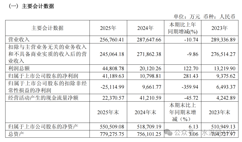 4月13日晚間,尖峰集團公告稱,2025年公司實現(xiàn)營業(yè)收入25.68億元,同比減少10.74%;歸屬于母公司所有者的凈利潤4.12億元,同比增長281.43%;歸屬于上市公司股東的扣除非經(jīng)常性損益的凈利潤為-2.5億元,同比減少359.94%。