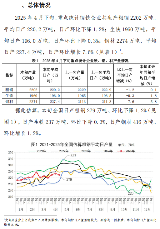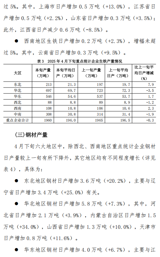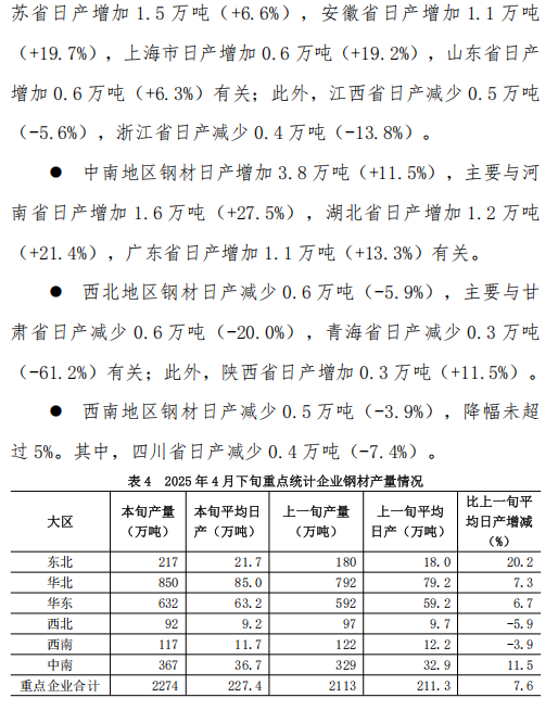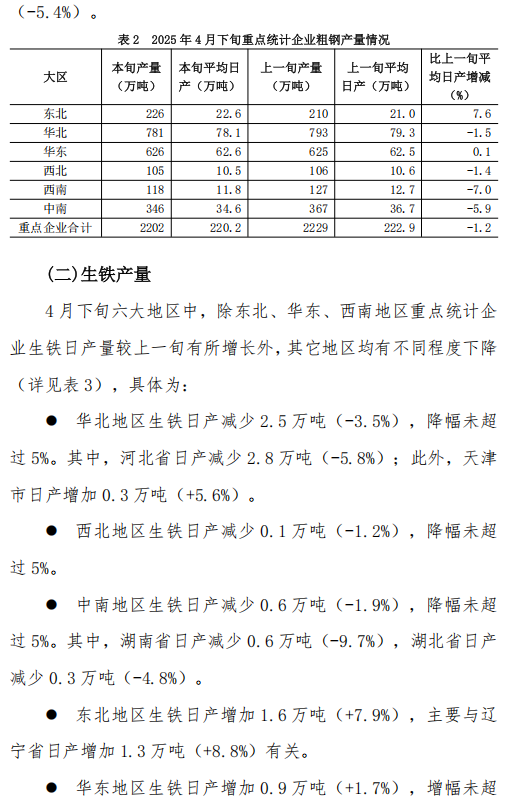4月下旬重點企業(yè)鋼鐵產量旬報