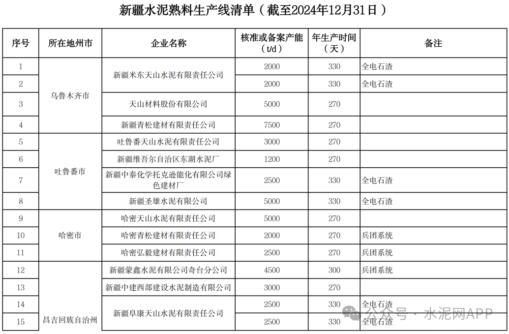 5月14日,新疆工信廳發(fā)布水泥熟料生產(chǎn)線清單。